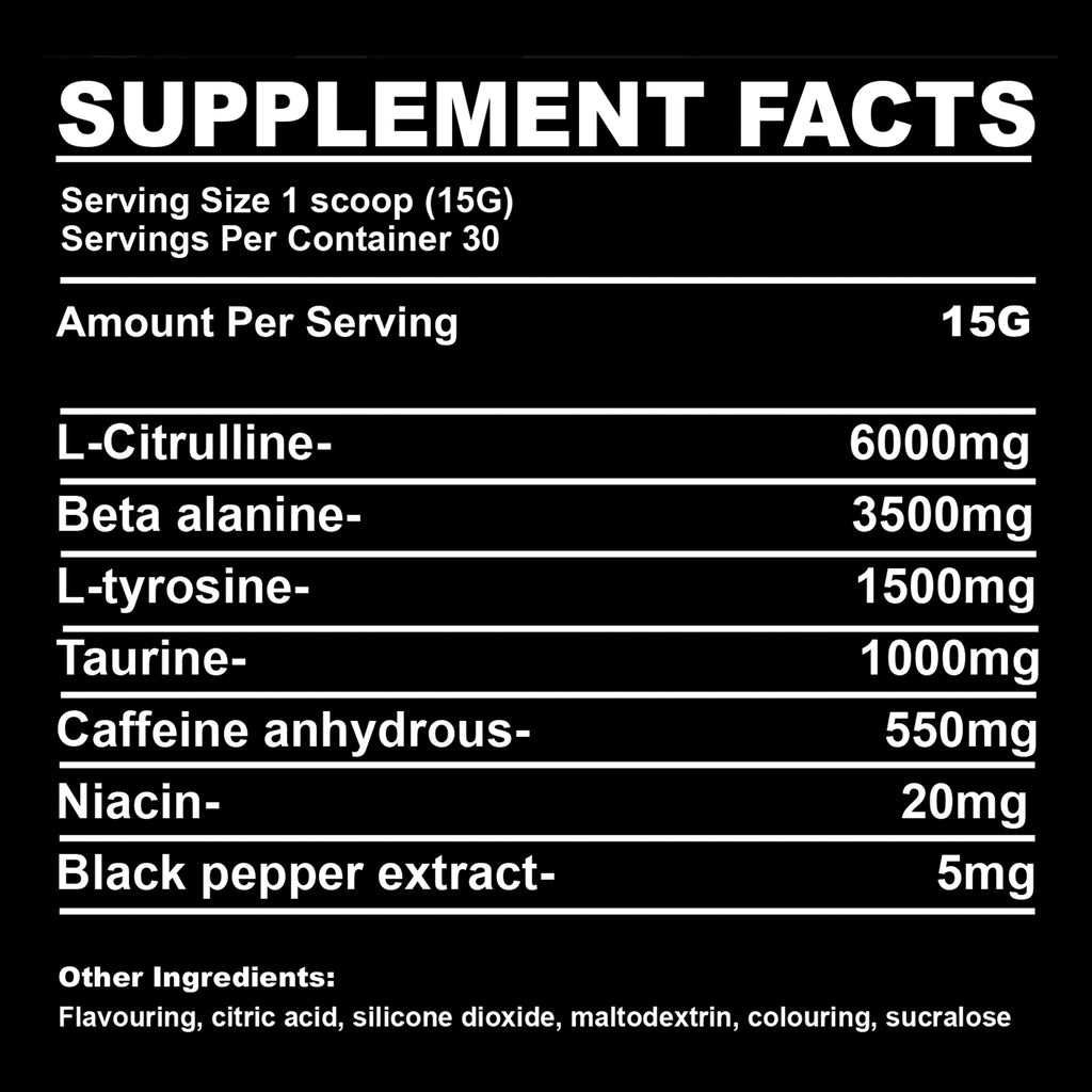 Get ready to lock in and destroy your session. 187 hits fast with intense energy, insane pumps, and aggressive focus. Built for athletes who want to smash every rep and leave nothing behind. No bullshxt, just pure violence in a scoop.
